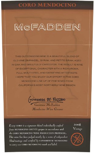Best Review 2008 McFadden Vineyard Coro Mendocino Mendocino County Potter Valley McFadden Farm 750 mL