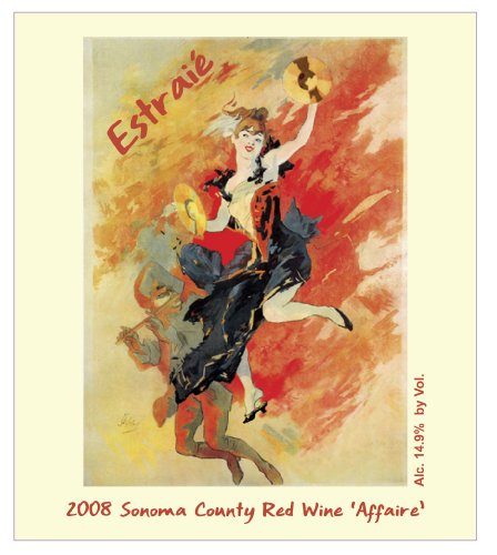 Estraié, in the ancient French, the source for the English for going astray. This wine began as a fun, small batch wine several years ago for our own enjoyment. It was so delicious we decided to make more for sale. The 2008 Affaire Red is our intriguing blend of Syrah, Cabernet Sauvignon and small amounts of Malbec, Merlot and Grenache. Perfect for watching the red sky of sunset at dayÕs end. Then, for casting the spell of gentle laughter and a promise of adventures yet to come. The label art is from a 19th Century French poster. 15 Months in French Oak Are you ready to begin you next Affaire?Read more 2008 Chandelle Estraié Sonoma County Red "The Affaire" 750 mL